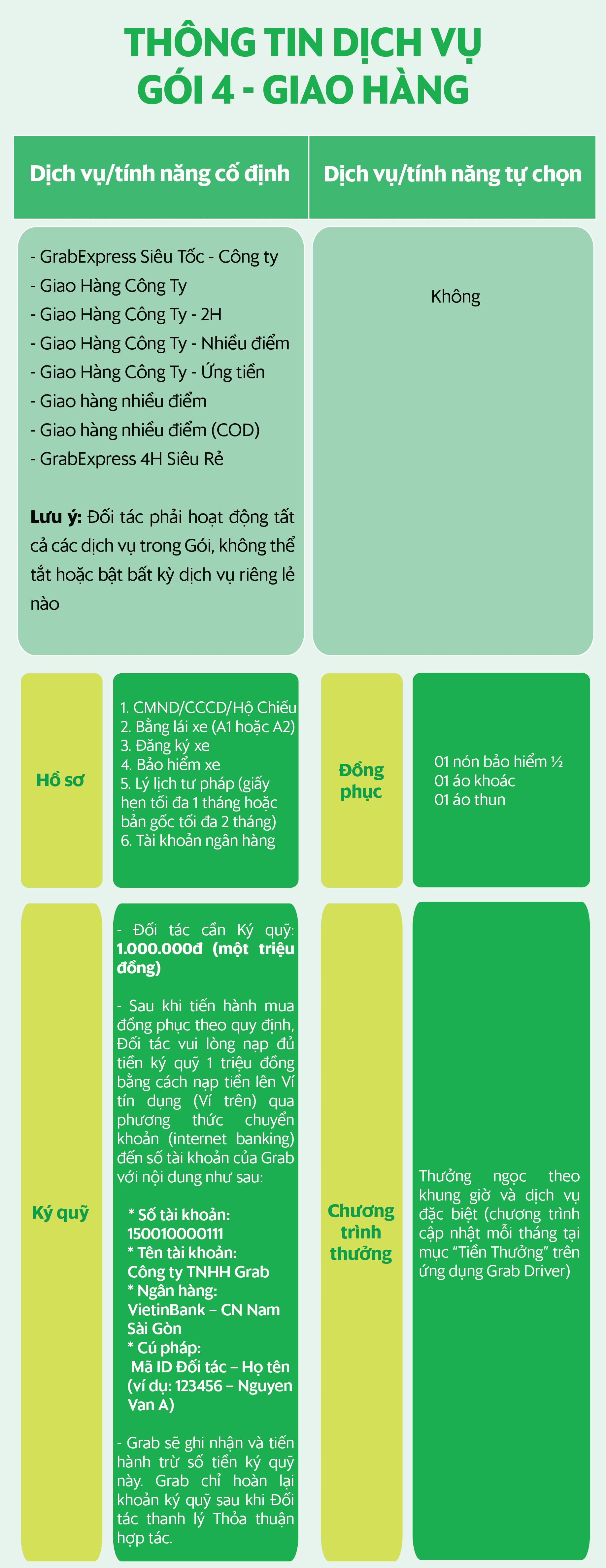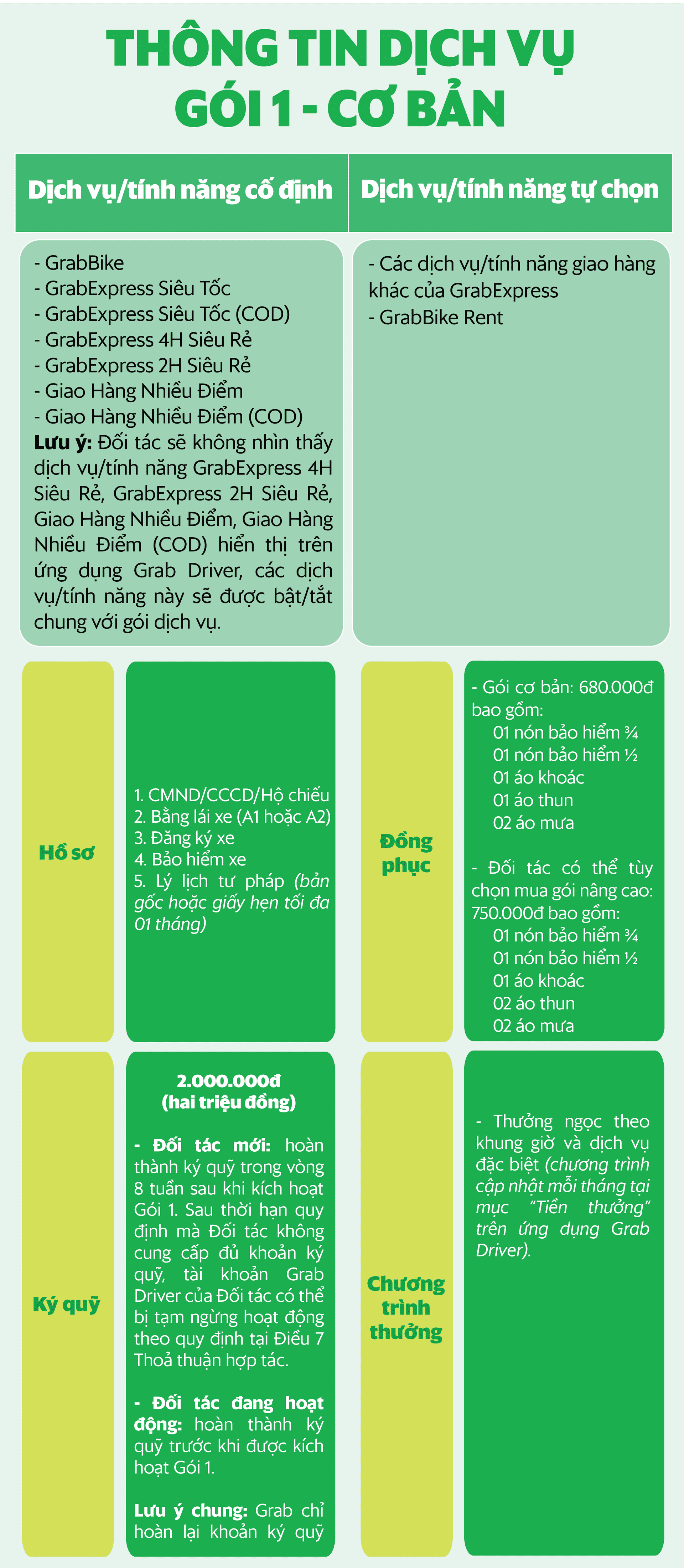 Với dịch vụ GrabTaxi, Đối tác cần chuẩn bị các loại giấy tờ như bên dưới.